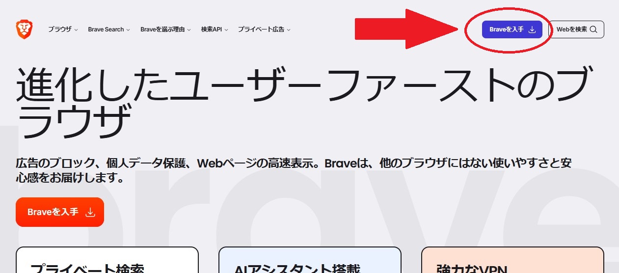 ここでは、Braveブラウザのダウンロード手順について解説します。