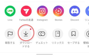 するとこのような画面が出てくるので、赤マルで囲われた「ダウンロードする」を押しましょう。そうするとスマホの中のフォルダに動画が保存されます。しかし、この方法だとTikTokのロゴとユーザーIDが動画に残ってしまいます。