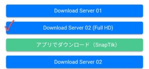 ダウンロードが完了すると、次は自分のスマホにダウンロードします。赤チェックのついているボタンをおすとFull HDでダウンロードをすることが可能です。この方法でダウンロードするとTikTokのロゴやユーザーIDを残さずに動画だけを保存することができます。