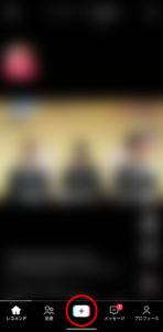 TikTokのアプリを開いたら、赤マルで囲われた「新規動画作成ボタン」を押しましょう。初めて動画を作成するときはカメラのアクセス許可を求められるので「許可をする」を押してください。