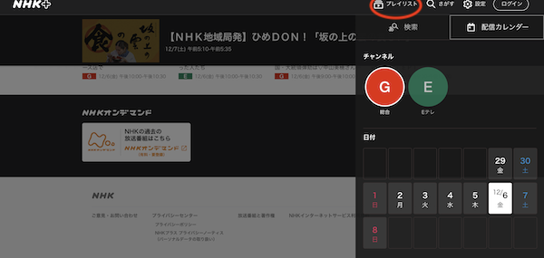 チャンネルと放送日で検索する場合も、まずは画面右上の「さがす」をクリックしてください。「配信カレンダー」というボタンをクリックし、チャンネルと放送日から番組を探せます。自分にあった方法を利用して、ライブ配信と見逃し配信を使い分けて活用してみてください。