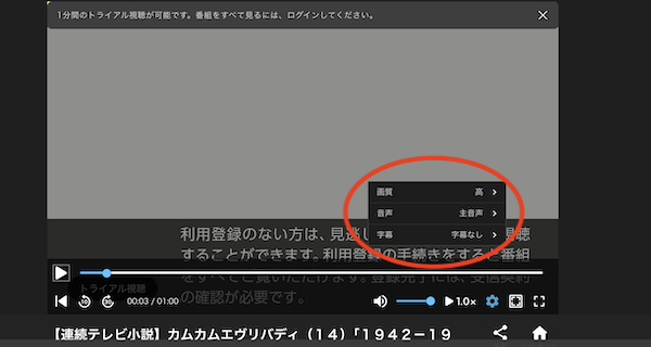 まずは字幕機能についてです。字幕機能の切り替え手順は以下のとおりです。
