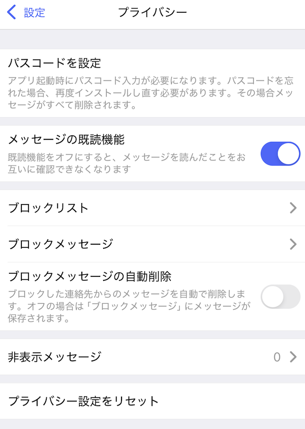 - 「メッセージの既読機能」という項目でオンオフを選択できる